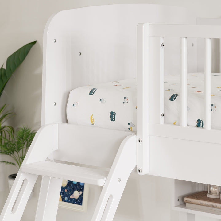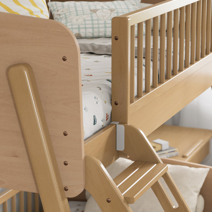 This timeless design blends safety and style with kid-friendly rounded edges and timeless spindles. The bunk bed has a compact ladder on the side of the bed making minimising the floorspace taken up. Crafted with a focus on durability and classic appeal, the Matilda Maxi Bunk Bed ensures a comfortable and cosy sleep environment while maximising storage and floor space.