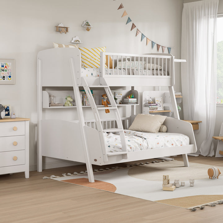 The Matilda Maxi Bunk Bed is the perfect space-saving solution for families, offering a single bed on top and a double on the bottom to provide ample sleeping space for everyone.