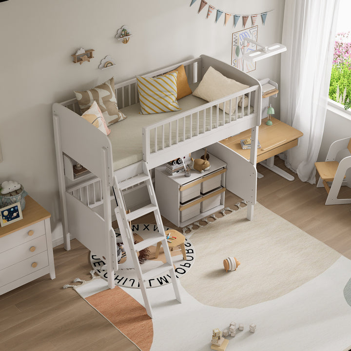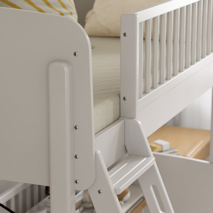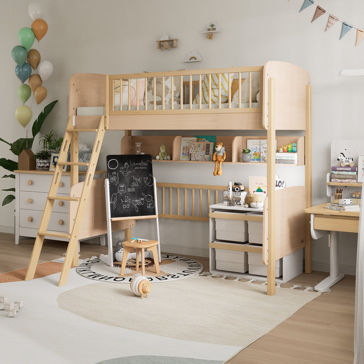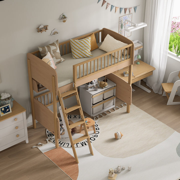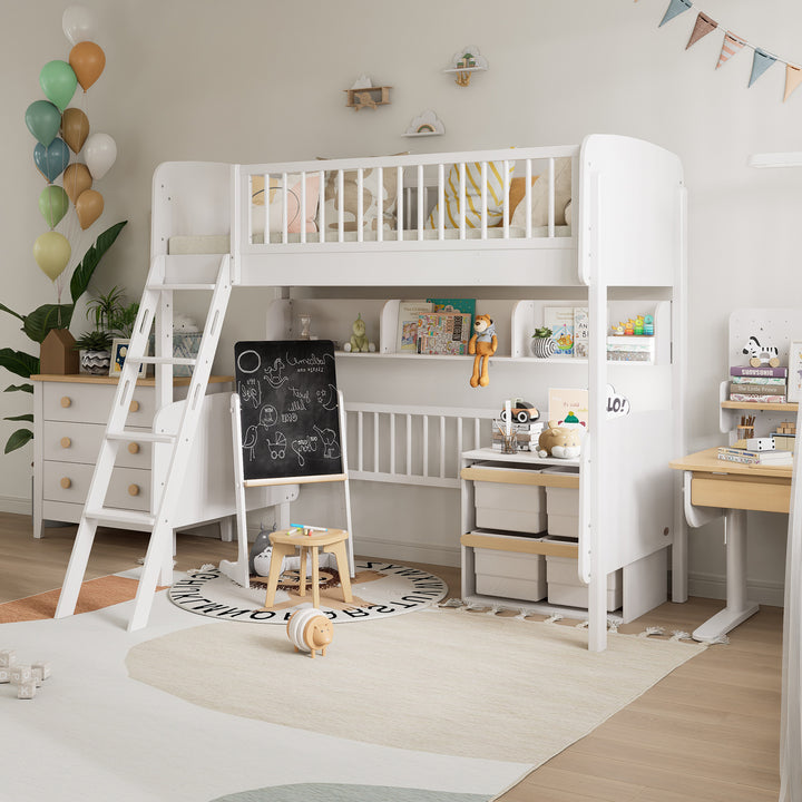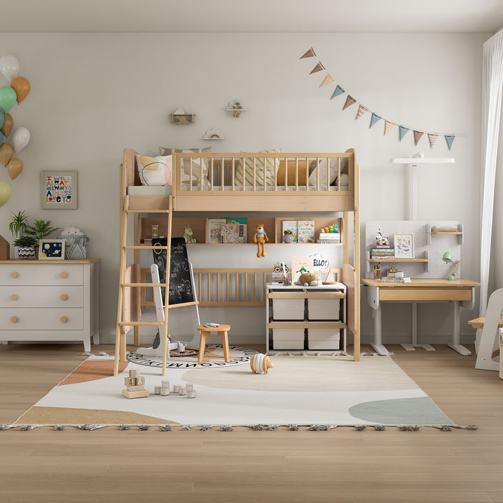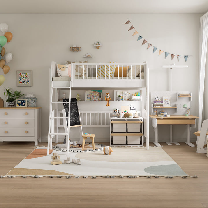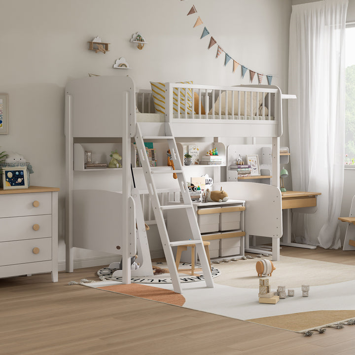 This timeless design blends safety and style with kid-friendly rounded edges and classic spindles. The loft bed features a compact side ladder to minimise floor space while ensuring easy access to the sleeping area. Crafted with durability and elegance in mind, the Matilda Single Loft Bed provides a comfortable and cosy sleep environment while maximising functionality and floor space.