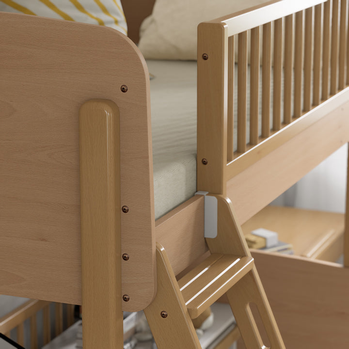 Materials & finish Bed frame crafted from a combination of plywood with laminate and sustainably sourced European Beech timber. Base slats use LVL timber. Ladder is made of Beech timber. |