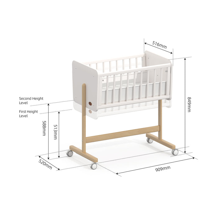 Keep your baby next to you - both during the day and throughout the night - in our Neat Bedside Crib. This wooden bedside crib not only provides comfort but also ensures safety, allowing you to have peace of mind knowing that your baby is sleeping soundly within arms reach.