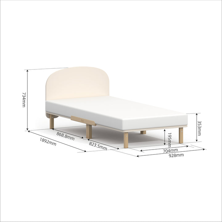 | Bed assembled dimensions Bed: Height: 73.4cm | Width: 92.8cm | Length: 189.2cm |