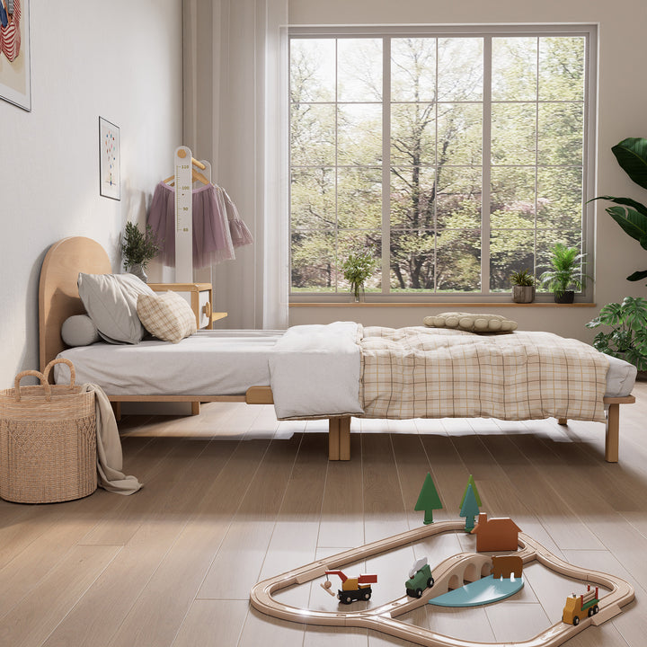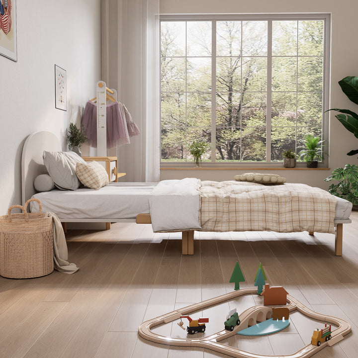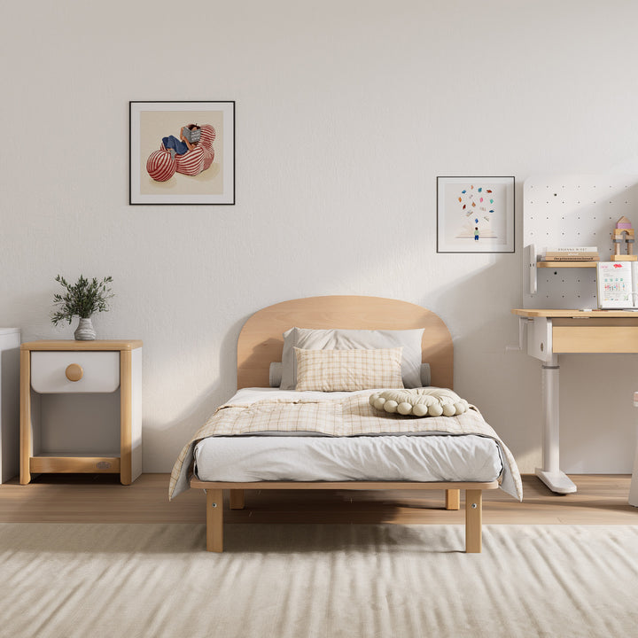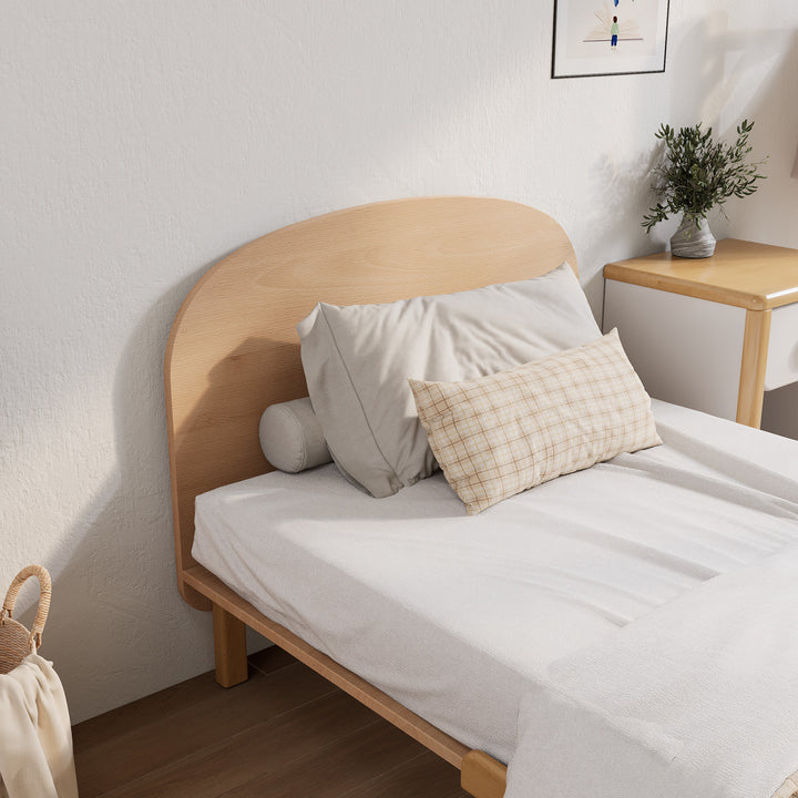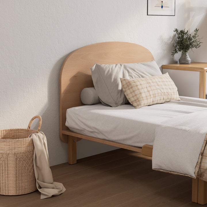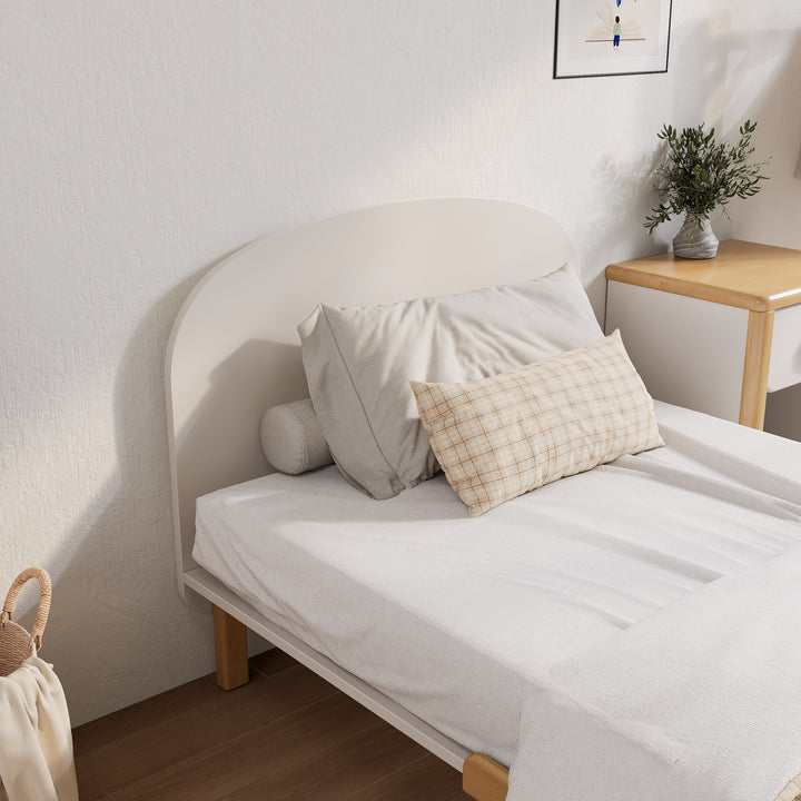 The Leaf Single Bed offers a minimalist design with clean lines and a simple, understated form. The gently curved, arched headboard adds a soft touch, enhancing the overall silhouette without overwhelming the space. Perfect for contemporary or Scandinavian-inspired interiors, the Leaf Single Bed creates a calm, uncluttered look, making it a versatile choice for both children's rooms and guest bedrooms.
