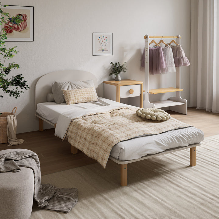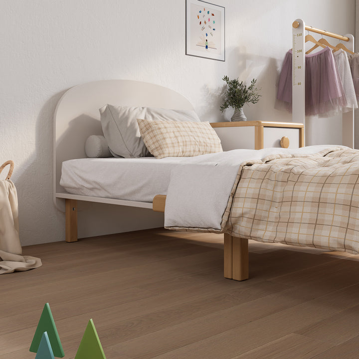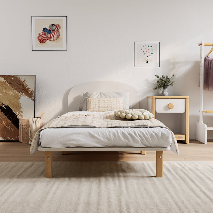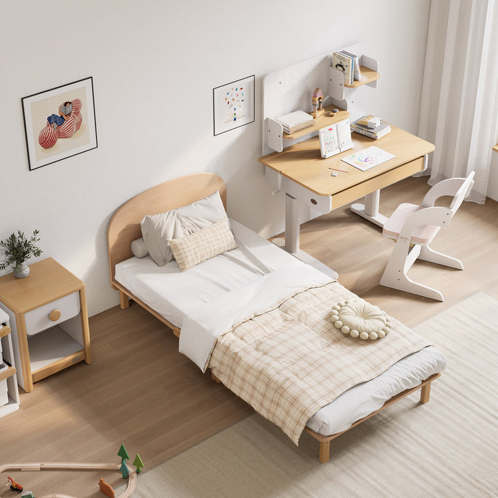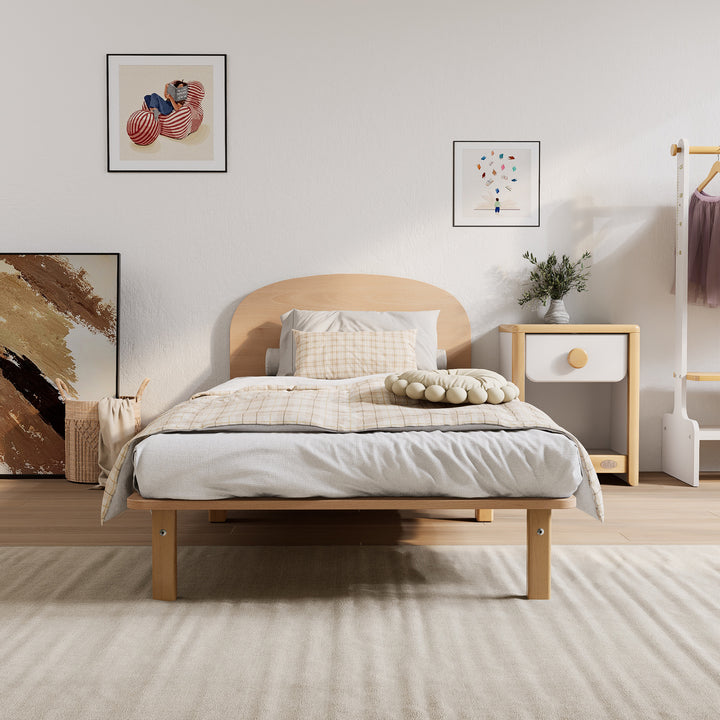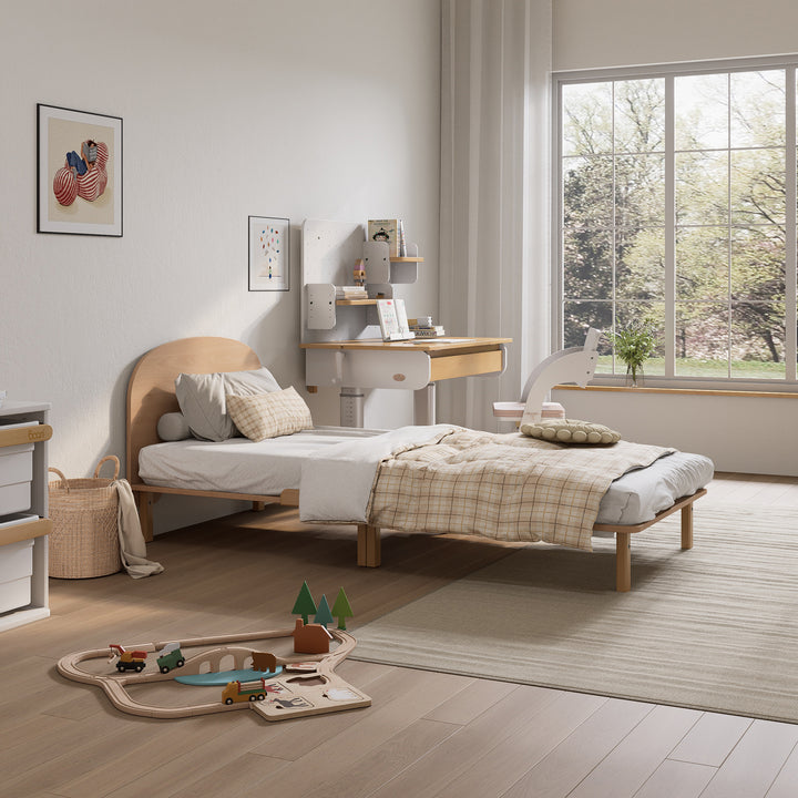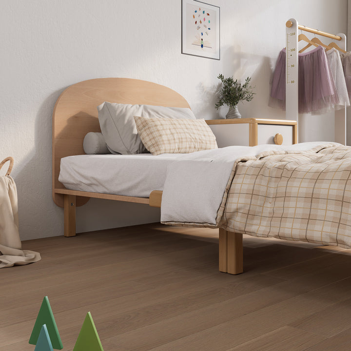 The Leaf Single Bed offers a minimalist design with clean lines and a simple, understated form. The gently curved, arched headboard adds a soft touch, enhancing the overall silhouette without overwhelming the space. Perfect for contemporary or Scandinavian-inspired interiors, the Leaf Single Bed creates a calm, uncluttered look, making it a versatile choice for both children's rooms and guest bedrooms.