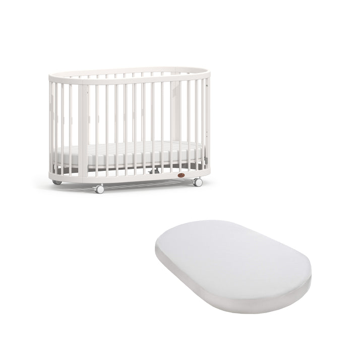 This oval baby bed comes with our Purotex Oval Cot Mattress that is designed to provide baby with optimum comfort and support. it's handmade using high quality British ECO fibres which are ultra firm and have hypo-allergenic properties.
